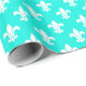 Bright Aqua White Fleur de Lis Pattern Wrapping Paper
