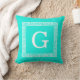Bright Aqua White Greek Key #1 Framed Monogram Cushion