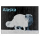 A digital painting of an Arctic Fox on a bright polar night. Text reading, "Alaska" appears in glowing blue and white.