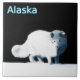 A digital painting of an Arctic Fox on a bright polar night. Text reading, Alaska" also appears in glowing blue and white.