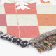 A quality printed throw has its advantages. This is a much finer weave throw than its loopier cousins, and though lighter, it is worth the investment for custom room accessorizing. The back is much prettier than the typical brown, and the fringe on the long sides very vivid, the selvage nicely done. Before photographing, I washed the throw in cold water, delicate, with a thicker woven throw the same size. On tumble dry low, this throw was dry in half the time as the other. This is a very practical quality if you use throws for furniture covers or to wrap up in frequently. The sleekness of the fabric makes it a great layer for accenting or protecting without the feeling of sitting on too much stuff. Perfect for napping or when you feel a light chill coming on. The color printing is beautiful and on this fabric, matched the design and color of my Photoshop image. This is an advantage for blending room fabrics and colors. The fringe on the short sides prints the colors from the design image and therefore varies from the side fringe. I streaked a white fractal line through the plaid pattern to give the illusion of weaving. This printed as crisp as an illusory thread, and put some white in the short side fringe, showing another advantage of print vs loomed- for artistic purposes, line lines, detail, and color integrity can be planned and preserved. My loomed throws have color limitations and more of a needlepoint texture. Print throws reproduce an exact image. The throw felt a little stiff straight out of the package, but this went away in the first delicate wash. Of course I searched the wash water for ink or bleeding and there was none.
