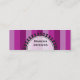 Bright stripes in shades of purple decorate this skinny business card bringing to mind the awning of an old fashioned candy store. A circular area, bordered in black, is provided for you to personalise the cards with your own message. A basic design that can be used for any business. It also makes a lovely calling card. Please send me a message if you would like this design with different colours.