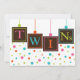 Great neutral design for when twins are expected. In fun and happy bright colours - polka dots in pink, teal, turquoise and lime green accent big dark brown baby blocks that spell out TWINS on the front. All party details on the back are easily customised.