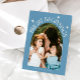 Whimsical and modern New Year's photo template card featuring an arch framed photo with a text around it that says "Bright Beginning." You can add another picture and a message on the back of the card. Denim blue.