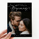 Modern New Year's photo template card featuring a typography text that says "bright new beginnings" with a picture. This design especially works well for those who had a big transition in their lives such as newlyweds or new graduates. You can add another picture and a message on the back of the card. Black.