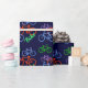 Here's a fun gift wrap that can be used for a variety of occasions, including birthdays or retirements! Brightly coloured red, blue, purple and green bicycles are scattered across a dark blue background. The customisable text in bright green says BIKE, but you may change it or personalise it, if you wish. Great for anyone who loves bicycling.