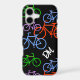 Here's a fun case that any bicyclist would love! Brightly colored red, blue, purple and green bicycles are scattered across a black background. Your two letter monogram stands out in white.