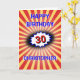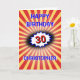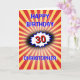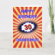 The background for this eye-catching birthday card is an explosion in deep red and yellow, with a blue-edged burst to emphasise the number. There is a vintage comic retro vibe to the design with crisp bright colours and images. Edit the Happy Birthday greeting, edit the number, change the name, and personalise the message inside as well.