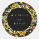 Bright Black Floral Watercolor Wedding Classic Round Sticker