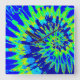 Bright Blue and Green Spiral Tie Dye Clock