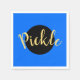 This fun template design features centred, festive, warm yellow script "Pickle" text against in front of a black centre circle and vibrant bright blue background. The text can be personalised.