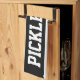 This fun design features big sports letters inside a black stripe highlighted with white stripes against a bright blue background. The colours and PICKLEBALL text in this template design can be personalised.