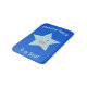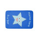 This awesome bath mat features a graphic image of a blue five pointed star with huge eyes and a big smile.