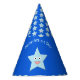 This awesome party hat features a graphic image of a blue five pointed star with huge eyes and a big smile.