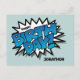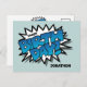 Simple, bright and bold this contemporary design will uplift and bring a smile to your face. The words “Happy Birthday” come in a bright blue pop art style and are set against a bold black and white zig zag speech bubble on top of a pale blue background. Customisable text is in bold black and it is simple to add the name of your choice. Modern and trendy it will appeal to young and old alike - a great way to show your friends, family or partner you love them on their special day!