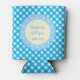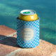 Bright Blue Gingham Custom Text Can Cooler