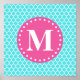 Bright Blue Moroccan Lattice Pink Monogram Poster