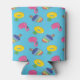 Keep your drinks cool as you sip them poolside with this personalised can cooler featuring a pattern of brightly coloured pool floats or pool tubes in the shape of a flamingo, a pineapple and a popsicle against a bright blue background. Use the template field to easily add your name or message to this pool party themed can cooler.