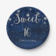 Bright Blue & Silver Starry Sweet 16 Party Paper Plate