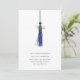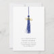 Modern graduation party invitation template card featuring an illustration of a blue tassel with a hanging faux gold foil charm of the word "GRAD". Personalise with your text on front and add the graduate's photo on the back of the card or remove photo and keep it simple and modern. Great for both high school and college graduate. Original artwork ©Marisu Valencia
