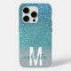 Bright Blue Teal Sparkly Glitter Ombre Monogram Case-Mate iPhone Case