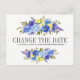 Bright Blue Yellow Flowers WEDDING CHANGE THE DATE Announcement Postcard