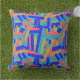 Bright Bold Blue Green Coral Abstract Patches Cushion