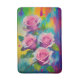 Warm Boldly Coloured Digital Oil Painting print of lovely pink roses on a beautiful multicolored background. Brighten up your bathroom this spring and summer with this trendy brightly coloured design