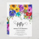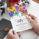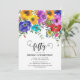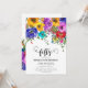 Bright and bold floral 50th birthday invitations that can be customised for any age. Design features calligraphy script lettering, hand painted watercolor flowers with green foliage and a classic elegant birthday template that is easy to customise.