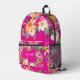 Bright bold wild flowers neon pink name printed backpack