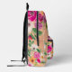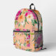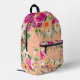 Bright bold wild flowers neon pink peach name printed backpack
