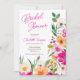 Elegant bright and bold modern spring summer flowers illustration with pretty oversized wild flower and brush script bridal shower with a modern calligraphy typography with bright neon pink, orange, green and yellow flowers.