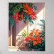 A vibrant and serene botanical illustration featuring lush tropical plants and red-orange leaves bathed in warm sunlight. The soft shadows and modern entrance background create a calm, summery atmosphere. Perfect for lovers of nature-inspired art, minimal tropical design, and cosy home decor.