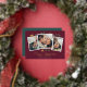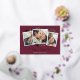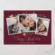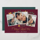 Elegant and festive holiday photo card frames three of your favourite square photos with a subtle deckled edge border and green holiday foliage peeking out at the corners with gold foil poinsettia flowers and berries. "Merry Christmas" appears along the bottom in foil calligraphy script, with your names beneath.