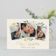 Elegant and festive holiday photo card frames three of your favourite square photos with a subtle deckled edge border and green holiday foliage peeking out at the corners with gold foil poinsettia flowers and berries. "Merry Christmas" appears along the bottom in foil calligraphy script, with your names beneath.