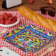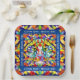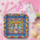 A colourful party for a cat lover or for a special feline will hit the right note with this stunning design. A modern, arty style of painting is reproduced in this gorgeous pet portrait, with the kitty's face recreated using irregular coloured tiles with a 'loose watercolor' style. You need only add your greeting or message once and it will appear on all four sides - please note that this part of the plate or bowl is not flat and there may be some crinkling to this area in the finished product.