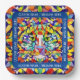Bright Cat's Face in Rainbow Colours - Custom Name Paper Plate