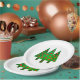 These festive Bright Christmas Grove Paper Plates make the perfect addition to your holiday celebrations! The minimalist design features elegant, simple green triangles representing the trees, adorned with round red ornaments, and anchored by rectangular trunks. This charming and tasteful illustration adds a touch of seasonal cheer to your table setting, making these plates an ideal choice for holiday gatherings, parties, and family dinners. Elevate your festive occasions with the charm of Bright Christmas Grove on White Paper Plates, where convenience meets delightful design.