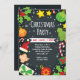 Bright and cheerful images of Christmas create a frame against a chalkboard background. A festive Christmas party invitation yours to personalise and send.
