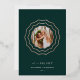 Share holiday greetings with these chic and minimalist Christmas photo cards featuring your favourite photo framed by a thin geometric frame in gold foil, on a rich hunter green background. "All is bright" appears beneath in off-white serif and italic lettering. Personalise with your custom greeting and names beneath. An elegant holiday card with a modern and minimal aesthetic that lets your favourite photo shine.