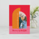 Bright Colorful Red Pink Family Photo Arch Holiday Card