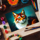 A cat in an unusual colour similar to a fox, bright and colourful.