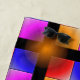 multicolored coloured squares on black background, and centre highlight. Abstract design