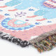 A quality printed throw has its advantages. This is a much finer weave throw than its loopier cousins, and though lighter, it is worth the investment for custom room accessorizing. The back is much prettier than the typical brown, and the fringe on the long sides very vivid, the selvage nicely done. Before photographing, I washed the throw in cold water, delicate, with a thicker woven throw the same size. On tumble dry low, this throw was dry in half the time as the other. This is a very practical quality if you use throws for furniture covers or to wrap up in frequently. The sleekness of the fabric makes it a great layer for accenting or protecting without the feeling of sitting on too much stuff. Perfect for napping or when you feel a light chill coming on. The color printing is beautiful and on this fabric, matched the design and color of my Photoshop image. This is an advantage for blending room fabrics and colors. The fringe on the short sides prints the colors from the design image and therefore varies from the side fringe. I streaked a white fractal line through the plaid pattern to give the illusion of weaving. This printed as crisp as an illusory thread, and put some white in the short side fringe, showing another advantage of print vs loomed- for artistic purposes, line lines, detail, and color integrity can be planned and preserved. My loomed throws have color limitations and more of a needlepoint texture. Print throws reproduce an exact image. The throw felt a little stiff straight out of the package, but this went away in the first delicate wash. Of course I searched the wash water for ink or bleeding and there was none.