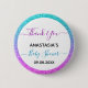 Bright, colourful "thank you" button for a baby shower with a pink/ blue/ turquoise/ aqua/ lilac/ purple glitter sparkles ombre border. Personalise by adding your own text, name and baby shower date. You can even change the text colour and font style using the customise option.