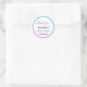 Bright, colourful "thank you" classic round sticker for a baby shower with a oink/ blue/ turquoise/ aqua/ lilac/ purple glitter sparkles ombre border. Personalise by adding your own text, name and baby shower date. You can even change the text colour and font style using the customise option.