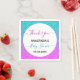 Bright, colourful "thank you" napkin for a baby shower with a oink/ blue/ turquoise/ aqua/ lilac/ purple glitter sparkles ombre border. Personalise by adding your own text, name and baby shower date. You can even change the text colour and font style using the customise option.