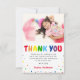 Thank friends and family for making your child's birthday a special occasion with these cute colourful childrens birthday party thank you cards. Show off a favourite photo of the birthday girl or boy, accented with rainbow 'THANK YOU' letters and playful dots. The thank you message is simple to personalise, helping your appreciation feel extra special. Make your memories last and send thanks in style.