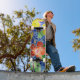 This multicolored design features a koi pond made of colourful mosaic tiles dappled in sunlight and shadow. A green koi fish appears to have stopped to smell the bright red flower, but there's no stopping this vibrant board.