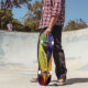 Feel the Tropical Vibes of this bright and vibrant multicolored skateboard of abstract palm tree leaves in purple, blue, green, yellow, orange and red. All the colours of the rainbow with a twist of the Tropics are on this colourful and fun skateboard. Personalise with own your Name or text.